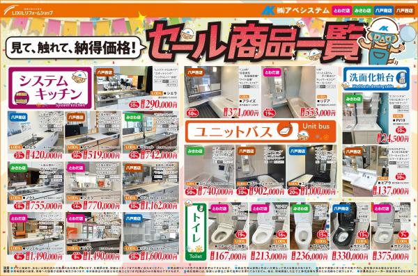 水まわりの展示品が大変お求めやすくなっておりますので、水まわりリフォームをご検討中の方はぜひこの機会にお問い合わせください。