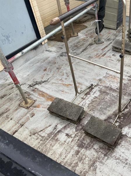 バルコニー床防水 ケレン→プライマー→ウレタン防水→トップコート |