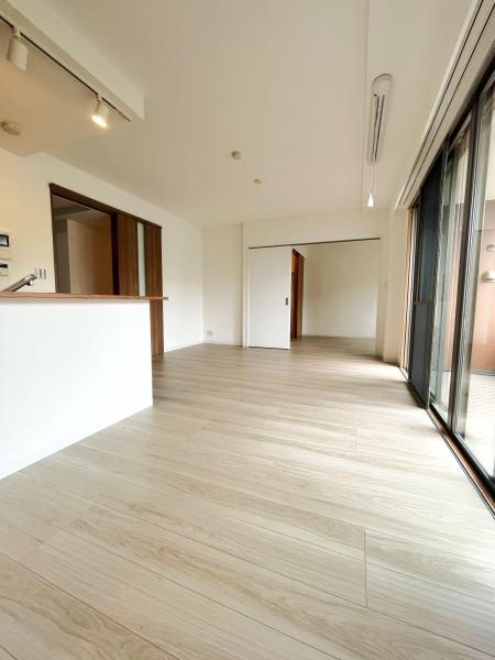 開口部有の壁付きで区切られていた台所を広げ、設備を交換いたしました。 スポットライト+陽光で手元も明るくお料理が楽しくなる調理スペースに。 |
