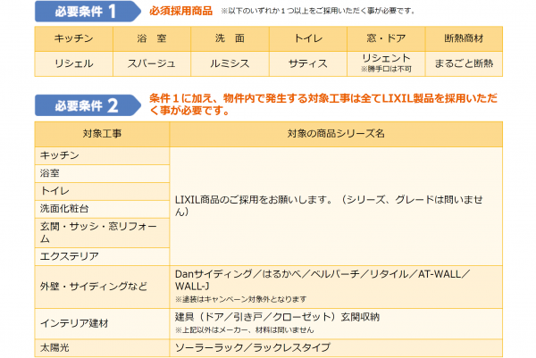 ・リフォームされる対象工事全てにおいて対象商品シリーズをご採用いただくこと