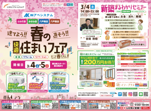 『春の快適住まいフェア』『新築まるわかりセミナー』開催♪