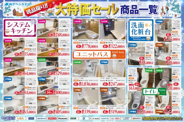 今なら対象商品を展示価格から最大50%OFFでご契約できる大変お得なセールとなっておりますので、青森県三八上北地区でリフォーム・リノベーションをご検討中のみなさまはぜひこの機会にご来場ください。