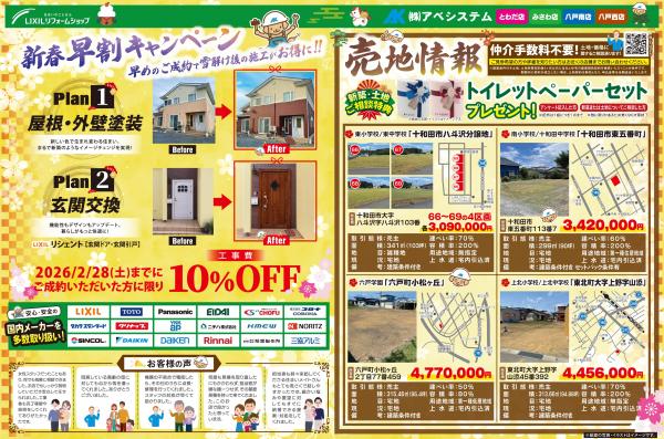 「アンケート記入した方」「新築または土地についてご相談した方」には『トイレットペーパーセット』をプレゼント!